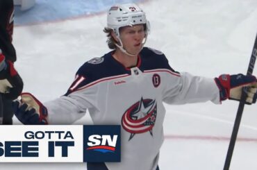 Regardez Kent Johnson rejoindre la liste des candidats à but de l’année avec un magnifique coup de spin-o-rama qui trouve…