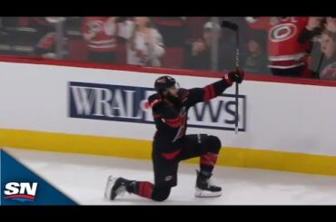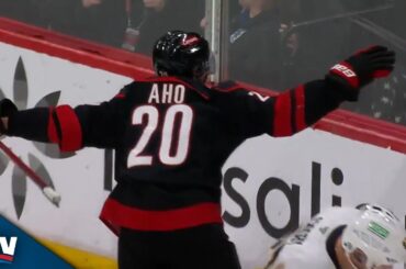Regardez Sebastian Aho des Hurricanes de la Caroline marquer son 600e point en carrière lors d’un rebond depuis la fente…