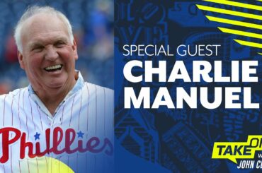 John Clark s’entretient avec la légende des Phillies Charlie Manuel avant le match 3 du NLDS des Phillies contre les…
