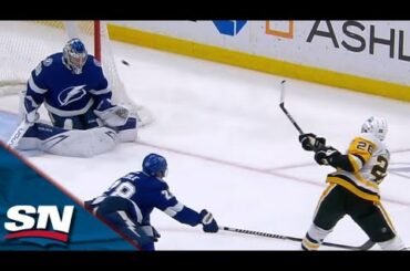 Regardez le défenseur des Penguins de Pittsburgh Jeff Petry accumuler son total de buts à la hâte, battant le gardien…