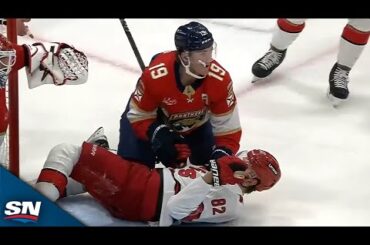 Regardez le défenseur des Hurricanes de la Caroline Jaccob Slavin marquer un but tandis que Jesperi Kotkaniemi, l’attaquant des Panthers…