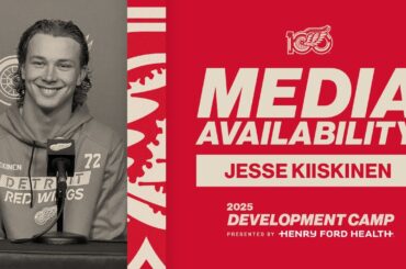 Jesse Kiiskinen parle avec les médias après 1 du camp de développement Red Wings au Belfor Training Center le lundi…