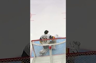 Chandler Stephenson tire sur Logan Thompson lors des échauffements et casse son masque. Thompson irait bien après un peu d’entretien…