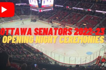 Présentations des joueurs, mise au jeu d’Alfredsson et cérémonies d’avant-match du match d’ouverture à domicile des Sénateurs d’Ottawa 2022-23.
