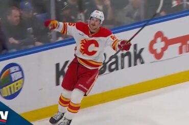 Regardez l’attaquant des Flames de Calgary Joel Farabee s’échapper sur une passe aérienne de Rasmus Andersson et battre le gardien…