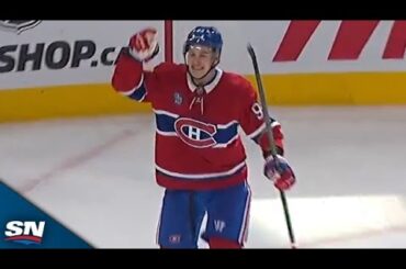 Regardez Ivan Demidov des Canadiens de Montréal attendre le gardien du Seattle Kraken Joey Daccord devant le filet avant de…
