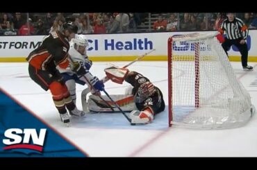 Regardez le gardien de but des Ducks d’Anaheim, John Gibson, s’étendre pour priver Mitch Marner des Maple Leafs de Toronto…