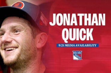 Le gardien des Rangers de New York, Jonathan Quick, répond aux questions des médias après la première journée du camp…