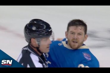 L’attaquant des Red Wings de Détroit Mason Appleton a tiré la rondelle dans le filet vide après le buzzer final,…