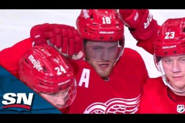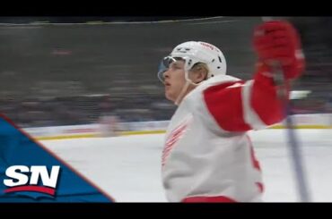 Regardez les attaquants des Red Wings de Detroit Jonatan Berggren et Andrew Copp combiner pour marquer deux buts rapides pour…