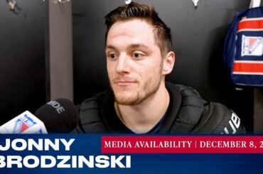 L’attaquant des Rangers de New York Jonny Brodzinski répond aux questions des médias après l’entraînement du 8 décembre. » Abonnez-vous…