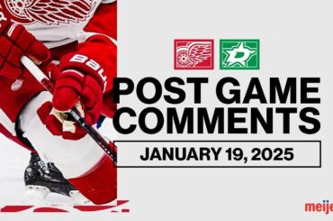 JT Compher, Alex Lyon et Todd McLellan s’entretiennent avec les médias après le match de Détroit contre les Stars de…