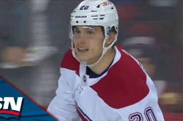 Regardez l’attaquant des Canadiens de Montréal Juraj Slafkovsky attraper le gardien des Flames de Calgary Jacob Markstrom hors de position…