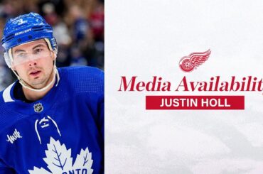 Justin Holl s’entretient avec les médias après avoir été signé par les Red Wings de Detroit le samedi 1er juillet…