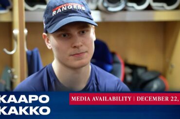 L’attaquant des Rangers de New York Kaapo Kakko répond aux questions des médias après le match du 22 décembre contre…