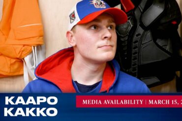L’attaquant des Rangers de New York Kaapo Kakko répond aux questions des médias après l’entraînement du 15 mars. » Abonnez-vous…