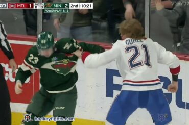 Kaiden Guhle contre Marco Rossi des Canadiens de Montréal lors du match du Minnesota Wild le 21 décembre 2023. via…
