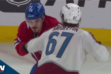 Keaton Middleton vs Arber Xhekaj de l’Avalanche du Colorado au jeu des Canadiens de Montréal le 22 mars 2025. Via…
