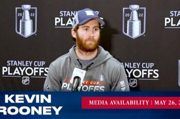 L’attaquant de New York Kevin Rooney répond aux questions des médias après l’entraînement du 22 avril. » Abonnez-vous au NYR…