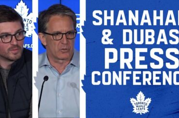 Le président et gouverneur suppléant Brendan Shanahan et le directeur général Kyle Dubas s’adressent aux médias lors des disponibilités médias…