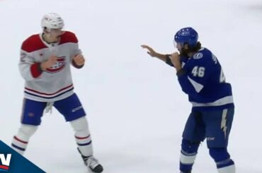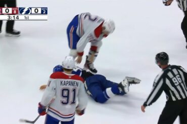 Regardez le défenseur des Canadiens de Montréal, Arber Xhekaj, prendre plusieurs coups contre Scott Sabourin du Lightning de Tampa Bay…