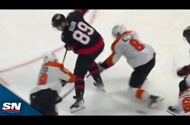Regardez Olle Lycksell des Sénateurs d’Ottawa marquer un but contre son ancienne équipe grâce à une belle passe entre les…