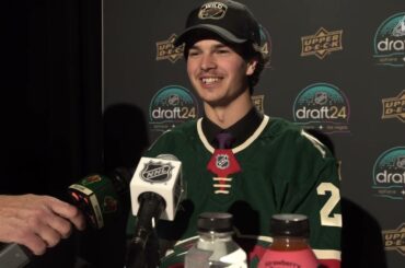 Le gardien de but des Rebels de Red Deer, Chase Wutzke, s’adresse aux médias après avoir été sélectionné 142e au…