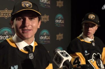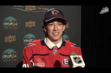 L’attaquant des Cougars de Prince George Terik Parascak s’adresse aux médias après avoir été sélectionné 17e au total par les…