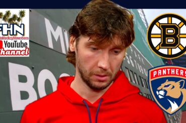 Le gardien de but des Panthers de la Floride, Sergei Bobrovsky, s’exprime après la défaite de son équipe 4-3 en…