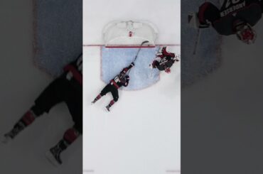 Jordan Martinook fait un effort incroyable pour empêcher une rondelle de franchir la ligne des buts au tout dernier moment…