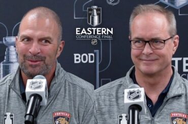 Le directeur général des Panthers, Bill Zito, et l’entraîneur Maurice parlent aux médias avant le match final de la Conférence…