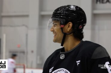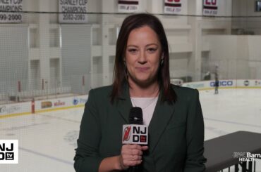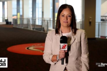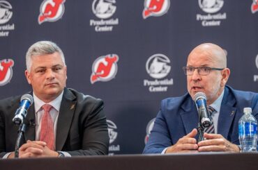 L’entraîneur-chef des Devils, Sheldon Keefe, et le président des opérations hockey/directeur général, Tom Fitzgerald, rencontrent les médias après la première…