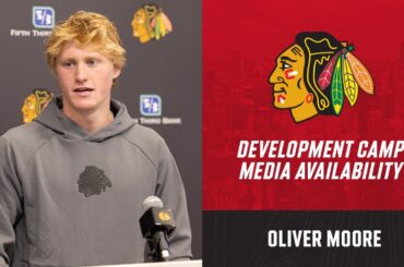 L’espoir des Blackhawks Oliver Moore s’adresse aux médias au camp de développement après le repêchage de la LNH 2024. Abonnez-vous…