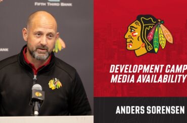 Anders Sorensen, entraîneur-chef des IceHogs de Rockford, s’adresse aux médias au camp de développement après le repêchage de la LNH…