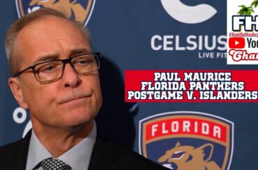 L’entraîneur des Panthers de la Floride, Paul Maurice, rencontre les médias après que son équipe a battu les Islanders de…
