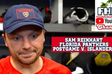 L’attaquant des Panthers de la Floride, Sam Reinhart, rencontre les médias à Long Island après que son équipe a battu…