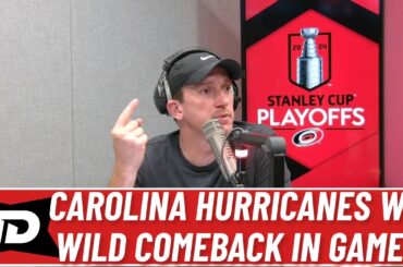 Tim Donnelly et Dennis Cox discutent de la victoire des Hurricanes de la Caroline dans le deuxième match, 5-3, contre…