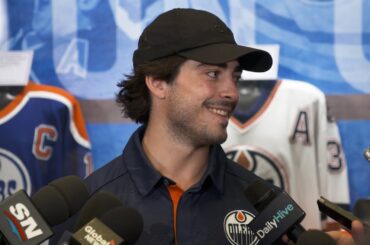 Matt rencontre les médias pour la première fois à Rogers Place après avoir été acquis par Edmonton dans un échange…