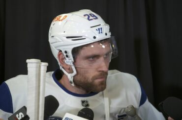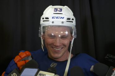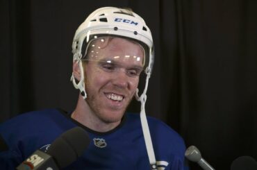 Connor parle aux médias alors que les joueurs des Oilers participaient à une séance d’entraînement informelle au DCA mardi.