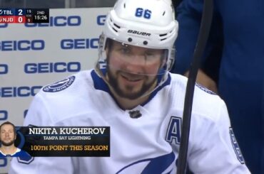 Nikita Kucherov devient le 101e joueur de l’histoire de la Ligue nationale de hockey – et le 2e patineur du…