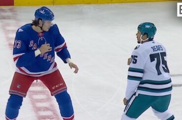 Matt Rempe contre Ryan Reaves combat des poids lourds lors des Rangers contre Sharks au MSG. C’est la deuxième saison…