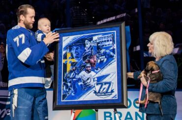 Avant le match, le Lightning organise une cérémonie en l’honneur de Victor Hedman qui atteint 1000 matchs dans la LNH…
