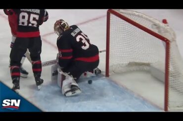 Les sénateurs gardiens Linus Ullmark soumettent son entrée pour la sauvegarde de l’année, en quelque sorte en train de se…