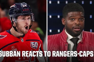 Steve Levy, PK Subban et Mark Messier réagissent à la victoire de 5-3 des Capitals de Washington contre les Rangers…