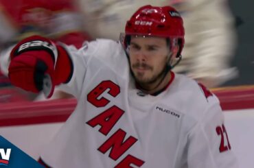 Regardez l’attaquant de Carolina Hurricanes, Logan Stankoven, monter à l’étage sur le gardien de but de Florida Panthers Sergei Bobrovsky…