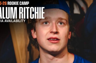 Le prospect de New York Prospect Calum Ritchie parle avec les médias après 5 du camp recrue des Islanders 2025…