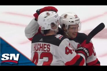 Regardez Luke Hughes, des Devils du New Jersey, marquer son premier but en carrière dans la LNH lors de son…