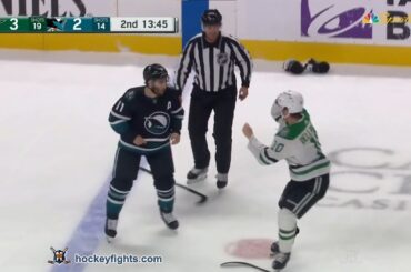 Ty Dellandrea contre Luke Kunin des Stars de Dallas lors du match des Sharks de San Jose le 26 mars…