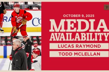 Lucas Raymond et Todd McLellan parlent avec les médias après l’entraînement matinal des Red Wings, le jeudi 9 octobre 2025.