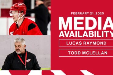 Lucas Raymond et Todd McLellan parlent avec les médias suivant l’entraînement de Détroit le vendredi 21 février 2025 au Belfor…